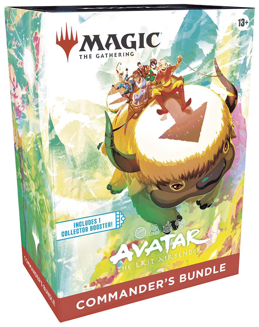 Este bundle maestro une los mejores elementos para los fans de Avatar: la leyenda de Aang con nueve sobres de juego, tierras básicas con arte completo increíbles y un sobre de coleccionista repleto de cartas raras o raras míticas, foil y otras sorpresas con mucho estilo. Pero eso no es todo: los jugadores de Commander se toparán con cartas esenciales temáticas de Avatar (Anillo solar, Botas de pies ligeros y Sello arcano), además de dos hechizos clásicos de una lista de diez que son perfectos para todo arsenal de Commander.